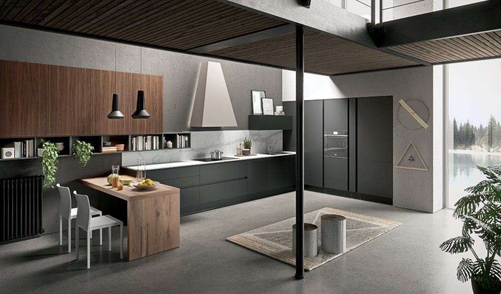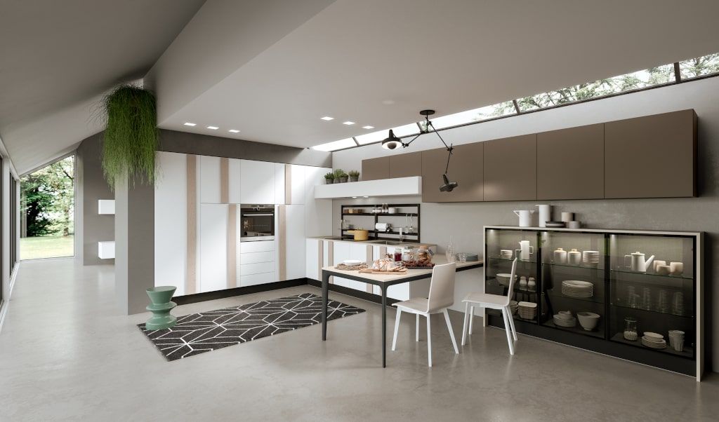 Una cucina dall’animo moderno che riflette le più attuali tendenze: la cucina Erika ad Alba si caratterizza per la forza dell’innovazione tecnologica e l’impronta rivolta verso ecologia e riciclabilità.
